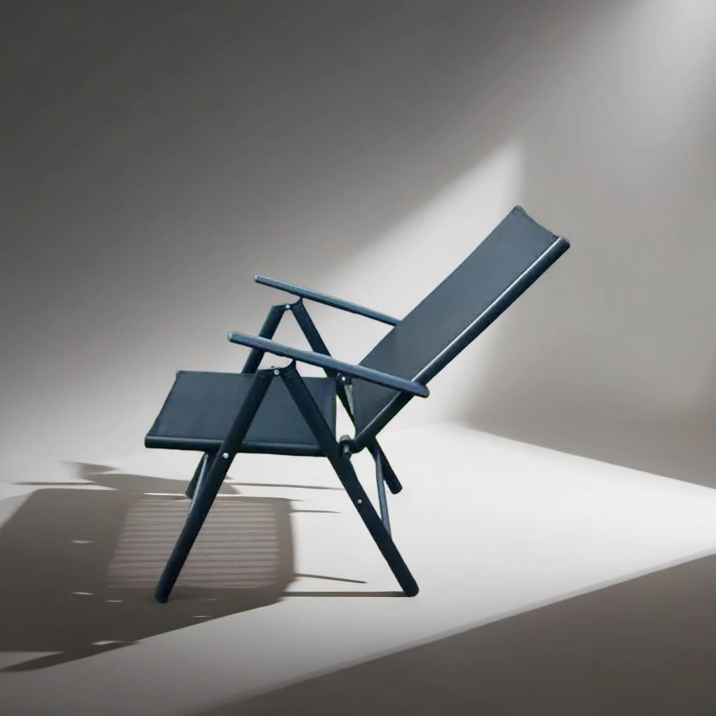 Ergonomic Black Reclining Patio Chair, Portable & Waterproof, Ideal for Poolside Relaxation
